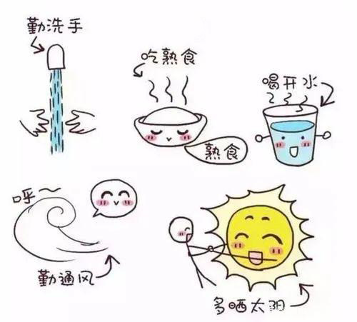 1.养成良好的卫生习惯,饭前便后要用洗手液洗手,注意饮水卫生,不喝生水。蔬菜肉类一定要洗净后高温煮熟,瓜果建议盐水浸泡后食用。家中食物要采用防蝇罩,以防止苍蝇、蟑螂叮爬食物。