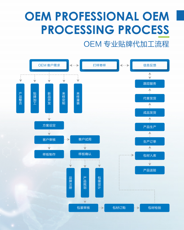 从原材料到包装定位,从配方到成品,我们擅长于将您的想法变成实际产品。坦莱国际竭诚为您提供售后服务,包括品牌运营推广,包装设计制作,仓储物流以及海外工厂的技术支持。